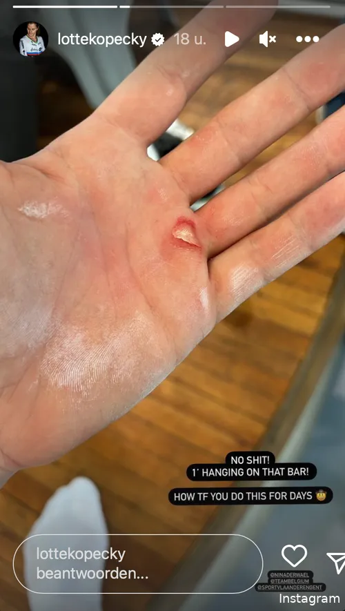 In haar video richt Lotte zich dan ook tot Nina: "Hey Nina, welke score zou je me geven?" Op het volgende beeld krijgen we te zien dat Lotte zich ook flink heeft toegetakeld aan haar handen: "Eén minuut aan de bar, hoe doe je dit dagenlang, Nina?!"