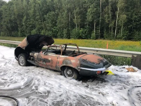Op de E313 ter hoogte van Herentals-industrie is dit weekend een wagen uitgebrand. Het oldtimermodel van Jaguar ging in vlammen op.