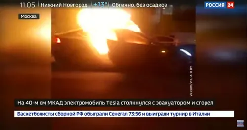 Op een drukke weg in Moskou is een Tesla ontploft. Door een storing in de automatische piloot week de Tesla af en botste zo op een takelwagen. Daarna ontplofte de wagen. De chauffeur en zijn twee kinderen raakten bij het ongeval zwaargewond. Een dashcam van een tegenligger legde het spectaculaire ongeval vast.