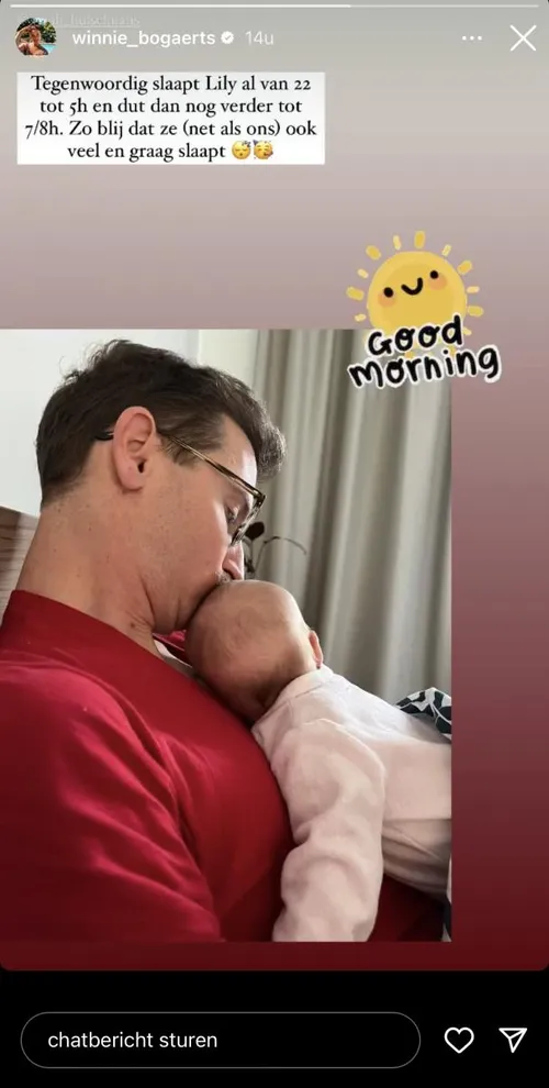 Bovendien heeft ze nog goed nieuws te melden, want de kersverse ouders kunnen ondertussen al wat meer rusten in de nacht. “Tegenwoordig slaapt Lily al van 22 tot 5 uur en dut dan nog verder tot 7 à 8 uur”, klinkt het. “Zo blij dat ze, net als ons, ook veel en graag slaapt”, aldus Winnie.
