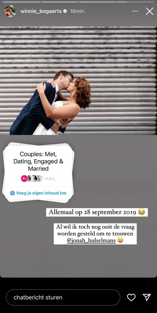 Jonah Hulselmans zijn al zo’n drie jaar gelukkig getrouwd. Toch heeft Winnie nog een duidelijke boodschap voor haar man. Dat onthult ze zelf op haar Instagramverhaal.