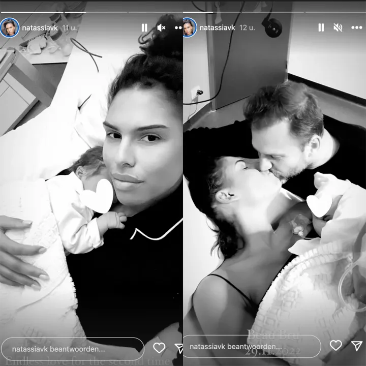 “Beau Bru, geboren op 29.11.2022”, schrijft Natassia op Instagram. “Weer helemaal verliefd", klinkt het verder nog. Daarbij laat ze al een voorzichtige glimp zien van haar pasgeboren dochtertje.