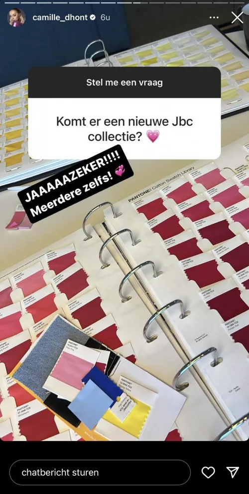 Tijdens een vragenrondje op Instagram verklapt ze daar zelf al meer over. “Komt er een nieuwe JBC-collectie”, vroeg een fan aan haar. De zangeres laat er geen gras over groeien en bevestigt dit leuke nieuws. “Jazeker!”, schreeuwt ze uit van blijdschap. “Meerdere zelfs!”, verklapt ze. Camille laat ook meteen zien dat ze al druk aan het werk is voor die nieuwe kledinglijn.